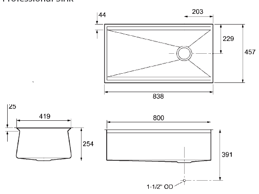 Installation: Undermount.png, Overall size: 838/457/259-mm.png, Bawl size: 800/419/248-mm.png, Minimum Cabinet Size: 900-mm.png, Tap-Holes: No.png, Overflow: No.png, Steel Gauge: 1.59-mm