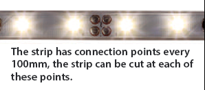 This customisable flexible strip allows you to illuminate several areas of a room using just one strip. Supplied as a 5m reel. The strip can be cut every 100mm, scissor marks on the product mark where suitable to cut. The strip has connection points every 100mm. When cutting the strip and reconnecting or connecting the first strip; slide the strip into the clip connector so the connectors sit under the 2 prongs and push down the clip head. (Ensure the polarity is correct as you do this). Each reel is supplied with 3M self-adhesive backing and Silicon fixing clips for secure installation. Use this versatile product for a variety of applications. All you need to install is a 5m Primo reel, driver connection lead(s) _ one per run of strips and a LED driver. Finish: White.