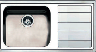Installation: Topmount.png, Overall size: 1000/500-mm.png, Bawl size:500/400/215-mm.png, Cut-out size: 980/480-mm.png, minimum cabinet size: 600-mm.png, Waste included: 90mm BSW.png, Tap Holes -: 1 Handed.png, Overflaw: Yes.png, Steel Gauge: 0.8-mm