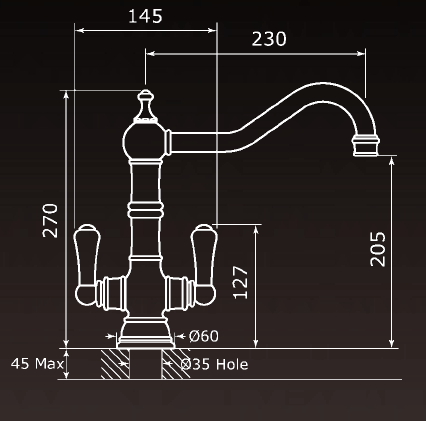 The Picardie is the more usual single hole mixer and as such can be fitted in most situations, either on a topmount sink or on the work surface.