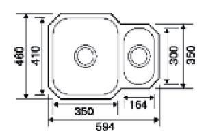 Installation: Undermount.png, Overall size: 594/460.png, Bawl size: 350/410/185-mm.png, minimum cabinet size: 600-mm.png, Waste included: 2 x 90-mm BSW & Connecting Kit.png, Tap Holes -: No.png, Steel Gauge: 0.8-mm