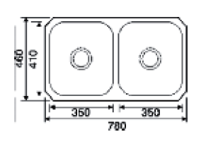 Installation: Undermount.png, Overall size: 780/460.png, Bawl size: 350/410/185-mm.png, minimum cabinet size: 800-mm.png, Waste included: 2 x 90-mm BSW & Connecting Kit.png, Tap Holes -: No.png, Steel Gauge: 0.8-mm
